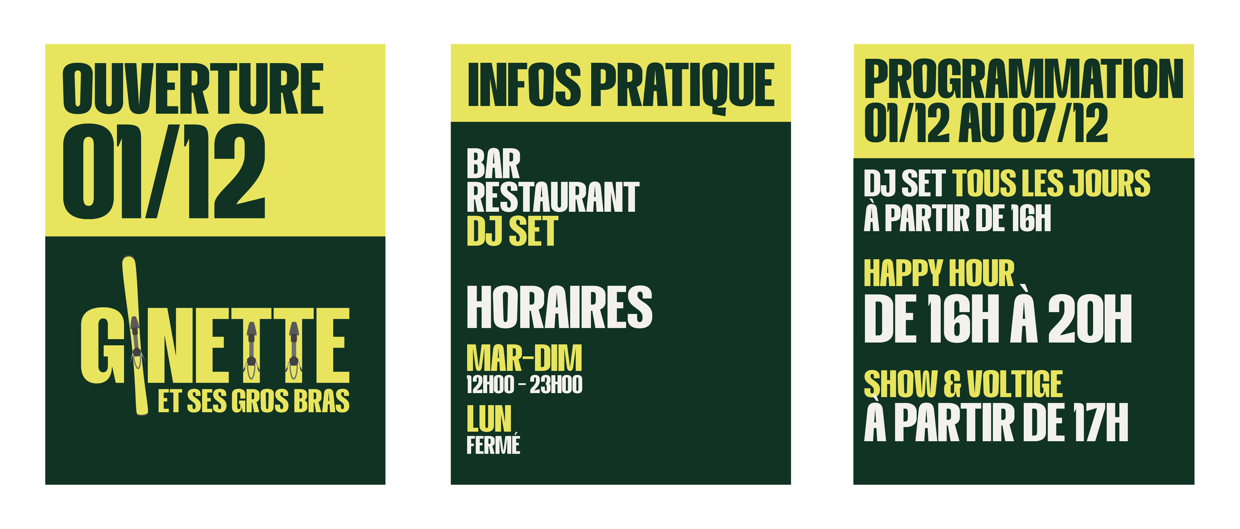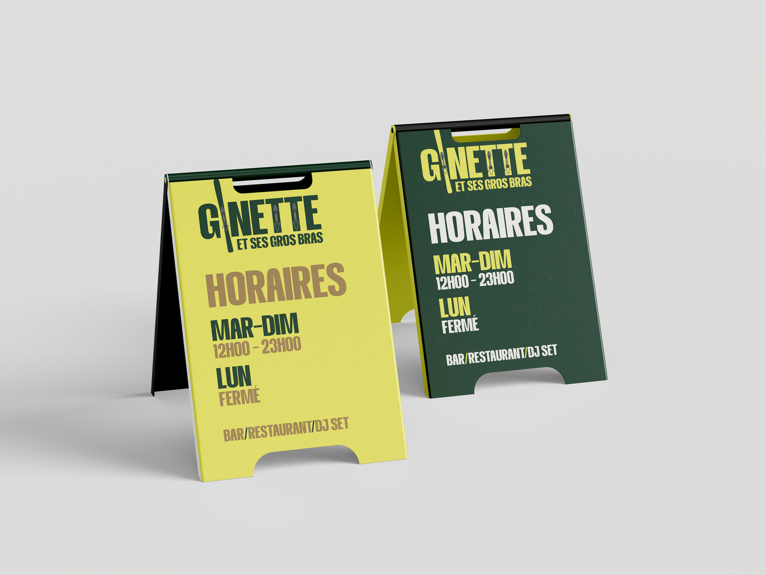 2026 - Ginette et ses gros bras - Restaurant d'altitudeCréation de l’identité graphique d’un restaurant d’altitude.