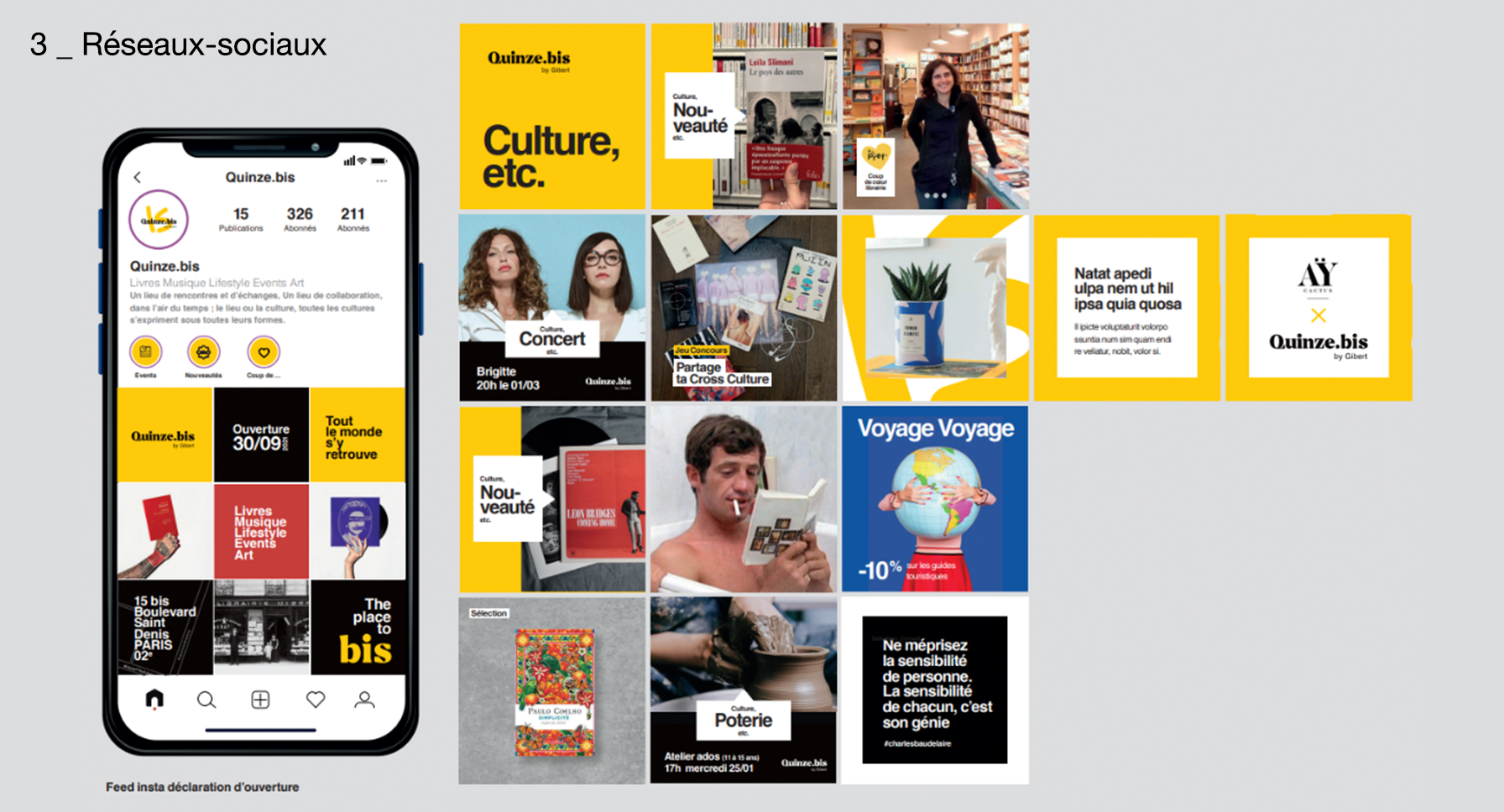 Face au déclin de sa librairie de Strasbourg Saint-Denis, Gibert a opéré un tournant stratégique avec le concept Quinze.bis. Plus qu'une simple rénovation (sols, peintures, mobilier), cette refonte marque l'émergence d'un lieu de vie culturel hybride. Ce changement de direction commerciale s'est traduit par une nouvelle charte marketing audacieuse, rompant avec les codes traditionnels de l'enseigne pour embrasser l'esprit "concept store".
