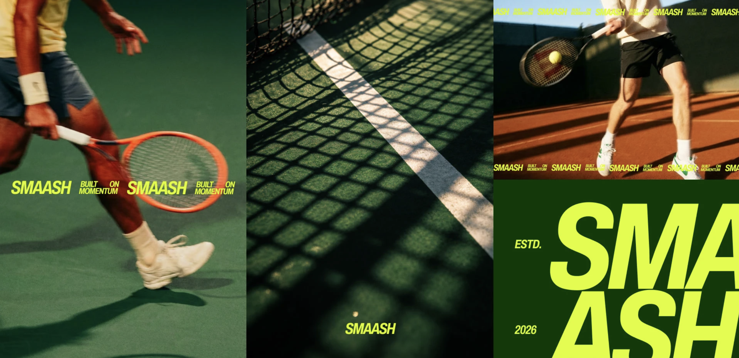 Smaash prend le contrôle du court. On a conçu une direction artistique qui respire la précision et le mouvement. Chaque ligne, chaque couleur a été pensée pour refléter l'exigence du haut niveau tout en ouvrant le tennis à une nouvelle ère. Le résultat ? Une image de marque percutante qui place le club sur le devant de la scène sportive.